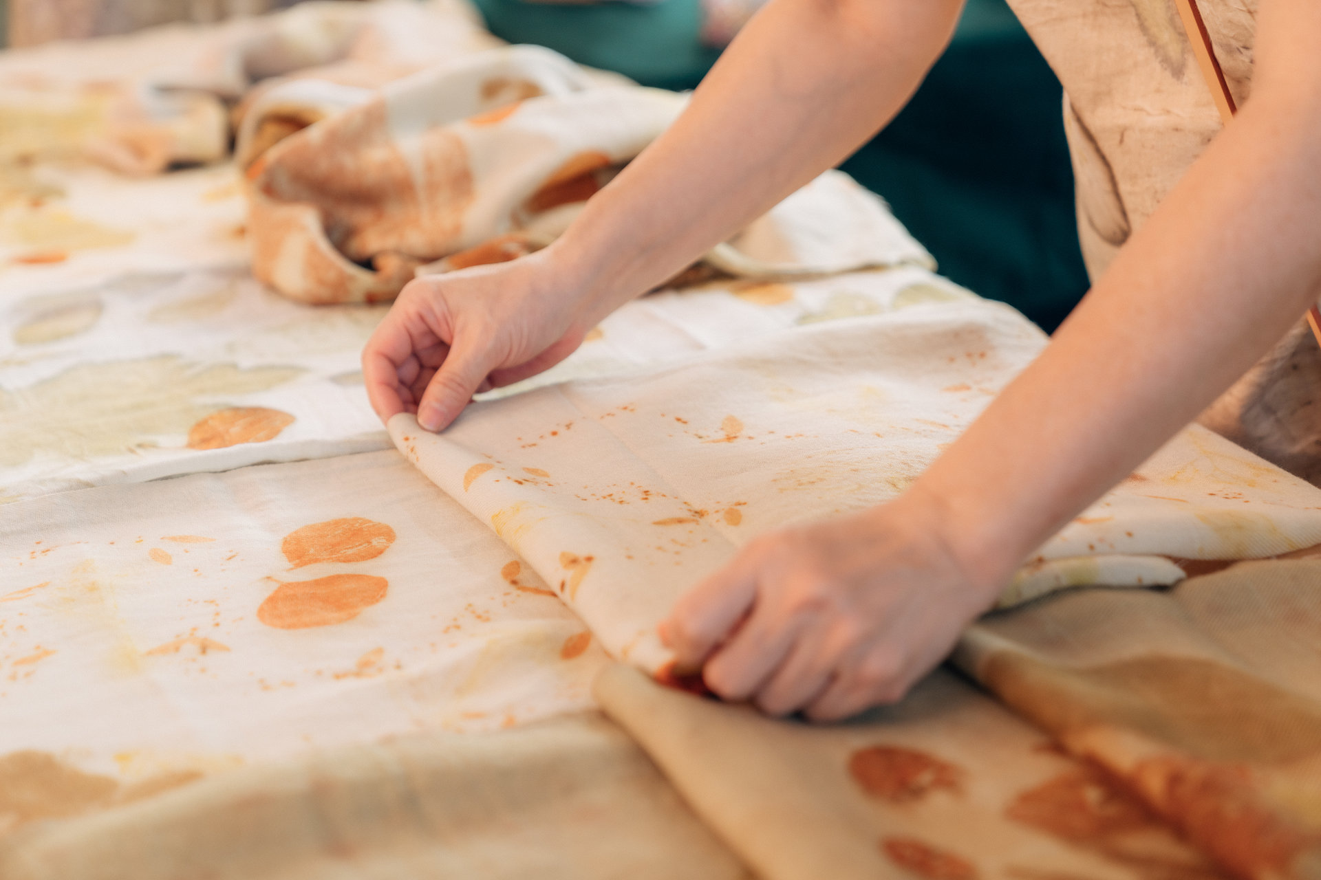 3.花葉移印染課程中由專業的徐東城老師教學,課堂中學會使用天然染材創作花葉移印染獨特色彩及染製技巧,並將四季花葉的美麗姿態印染出獨一無二花布。