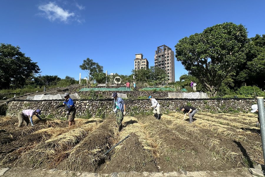 緊接著,田區將展開插秧前的「打田(整地)」工作。在眾人協力下,手持鋤頭將菜葉殘體與雜草翻入土中化作養分,並整平土面,這樣代替大量人力的耕耘機才能順暢的行駛,為三月份的「蒔田(插秧)」打造優質水田環境。臺北市客家文化主題公園依歲時節令呈現不同地景,每月皆有精彩活動,歡迎至官方網站或 Facebook 搜尋「臺北客家農場」掌握最新動態。