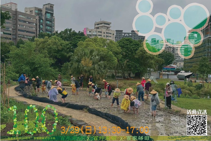 臺北市客家文化主題公園內的「臺北客家農場」,將於3月29日(日)舉辦「百年稻香再現臺北市農園」一期稻作蒔田(sii tienˇ,插秧)活動。適逢臺灣蓬萊米命名100週年,本次活動特別選用經典品種「台中65號」秧苗,號召100個家庭赤腳下田,在都市叢林種下跨世紀的稻香,共同實踐都會客家的農夫生活與保種教育。